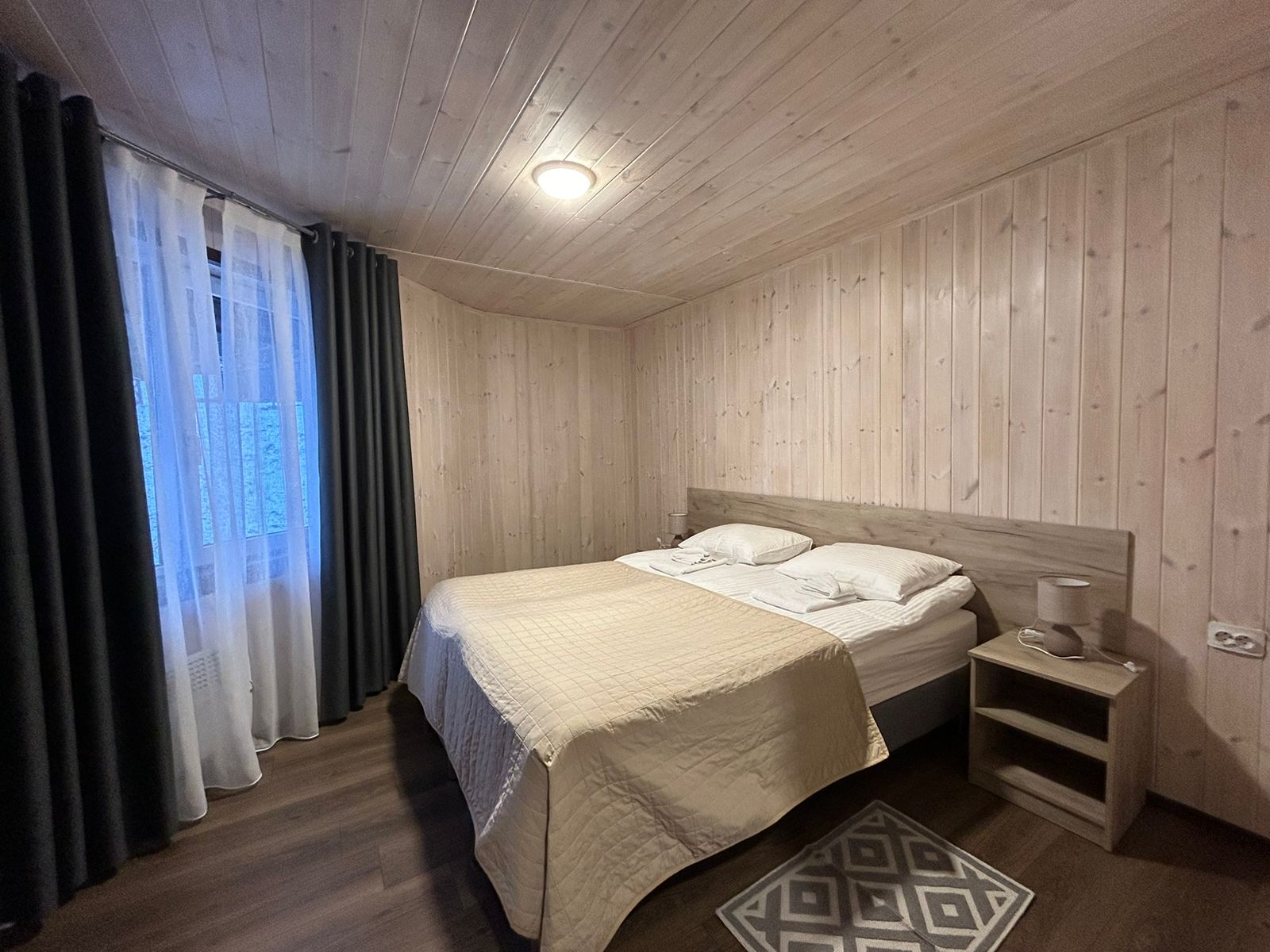 Вместимость до 4 мест. Дети до 5 лет — без отдельного спального места и оплаты. Доступны двуспальная или односпальные кровати.