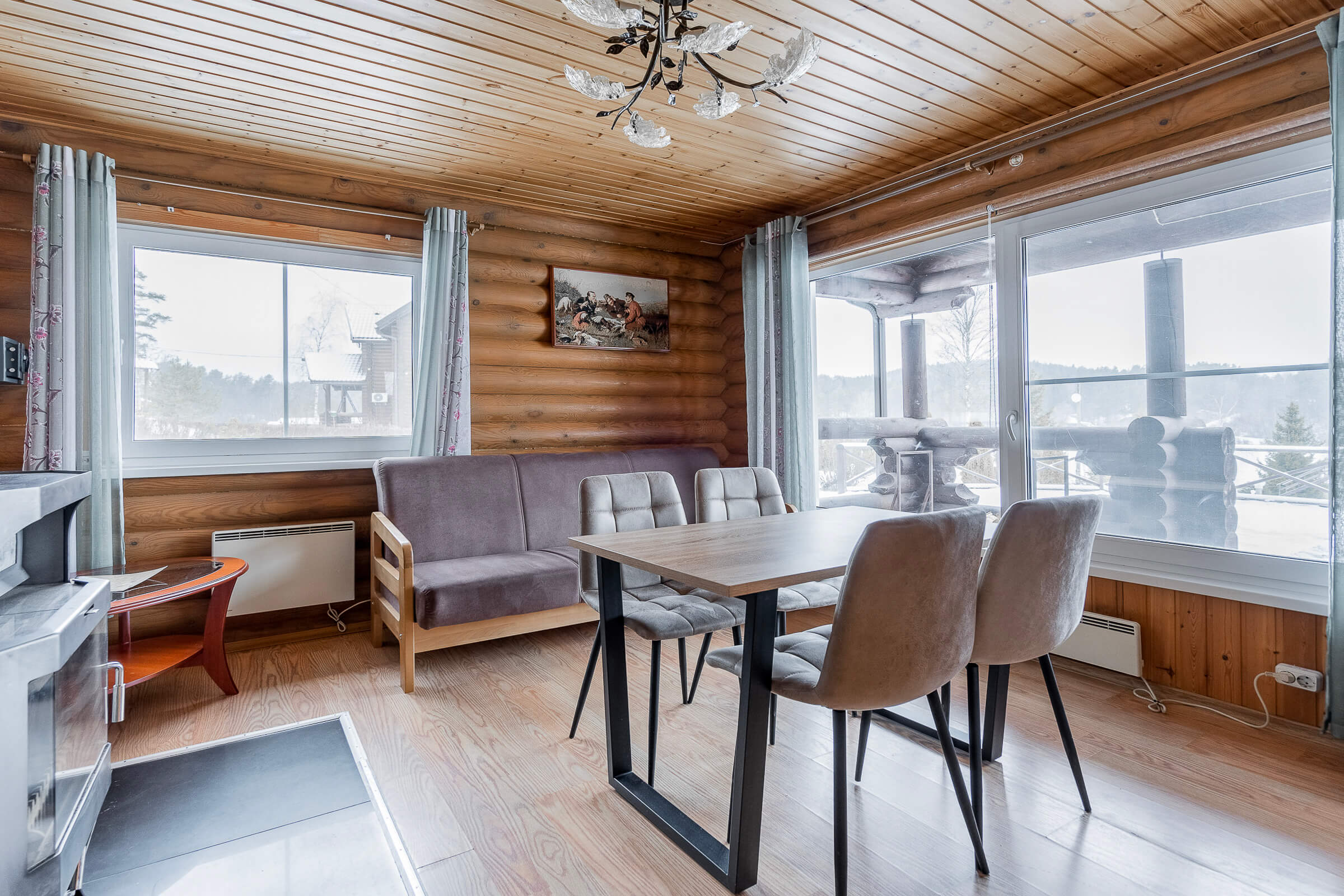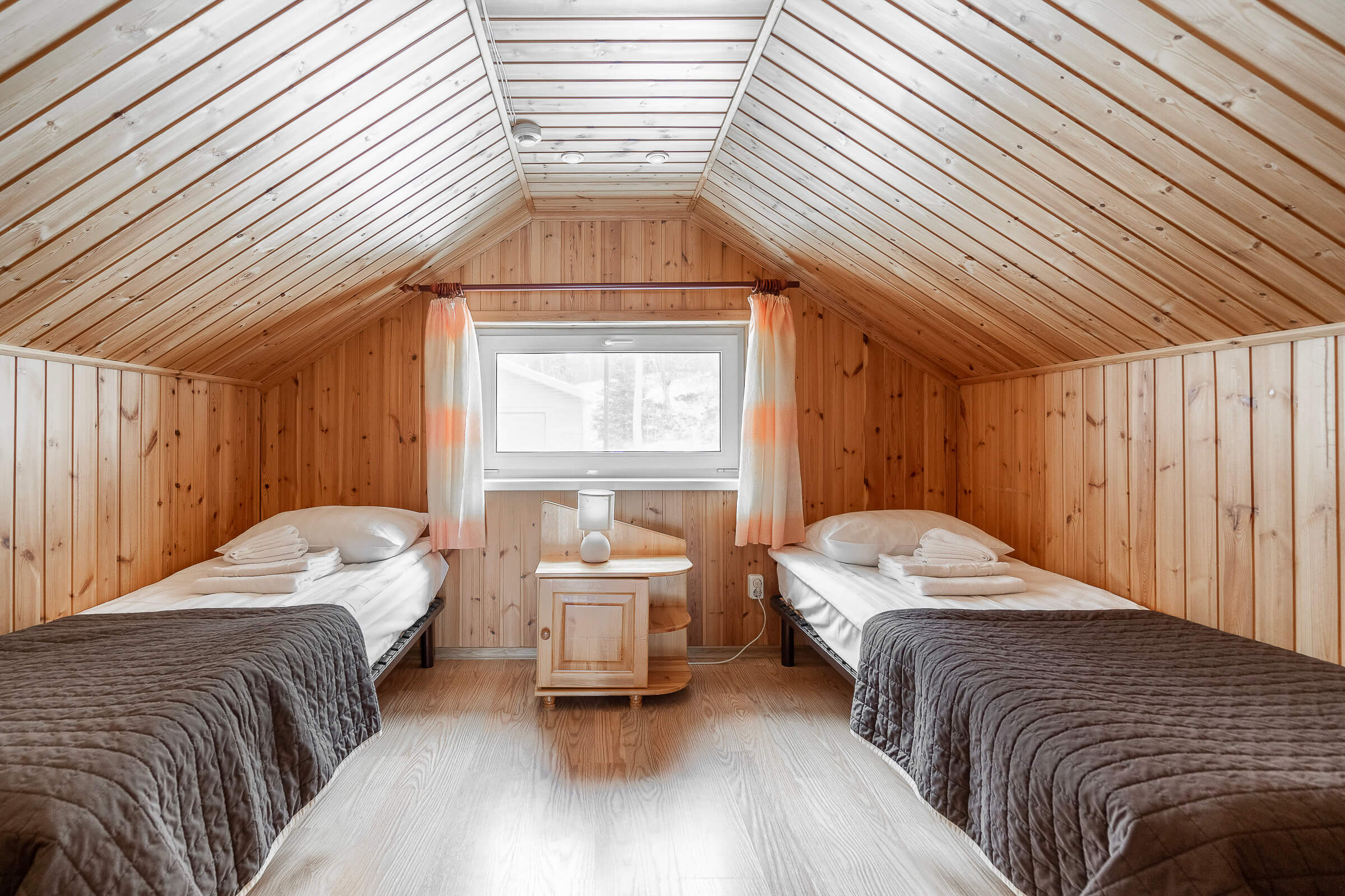 Коттеджи №4,5,6,7 расположены на самом берегу залива, четырехместные, есть возможность дополнительного места. Во всех коттеджах: кухня (охлаждающий минибар, микроволновая печь, плита, электрочайник, набор посуды), обеденная зона, просторный холл с камином и выходом на крытую веранду, стандартный набор мебели, телевизор.