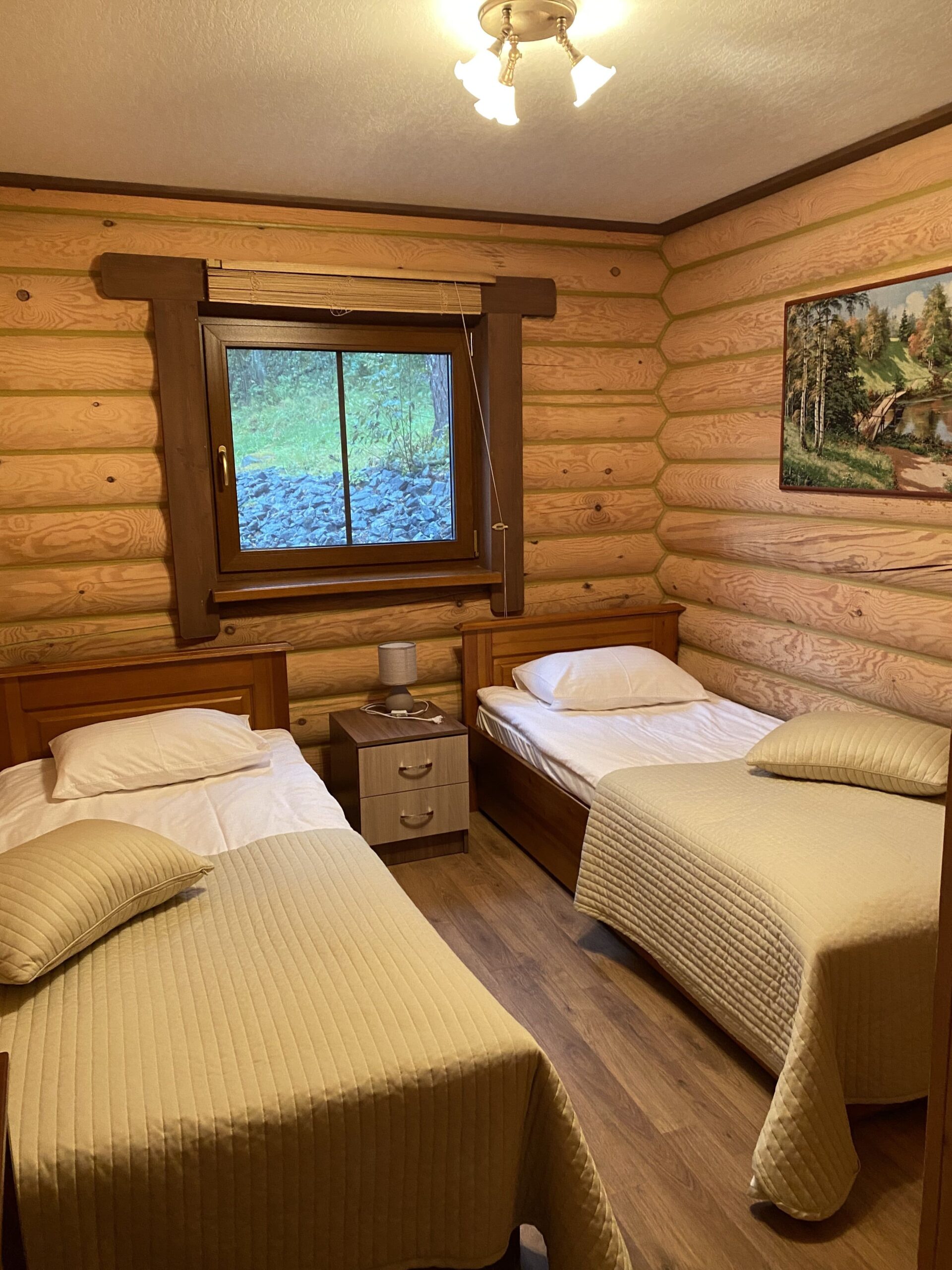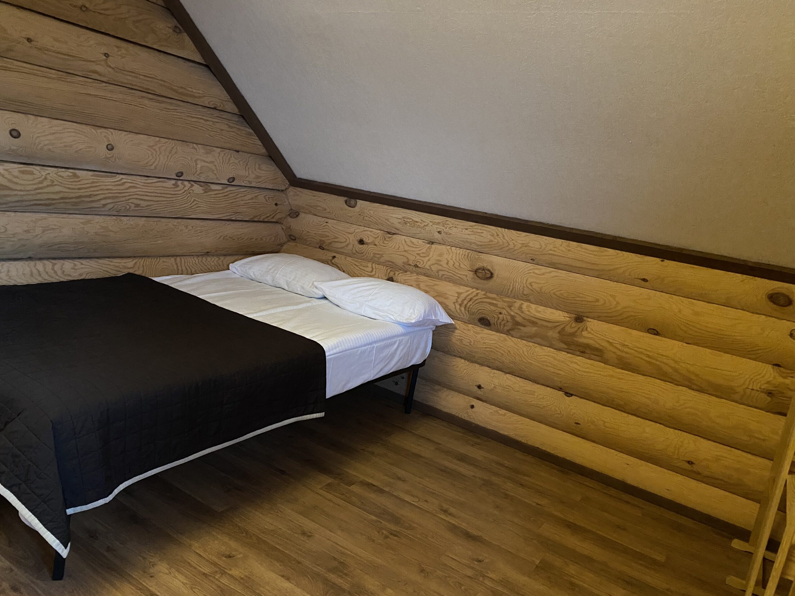 Вместимость до 6 мест. Дети до 5 лет — без отдельного спального места и оплаты. Две односпальные кровати на первом этаже. Две полуторные кровати и две односпальные кровати на втором этаже