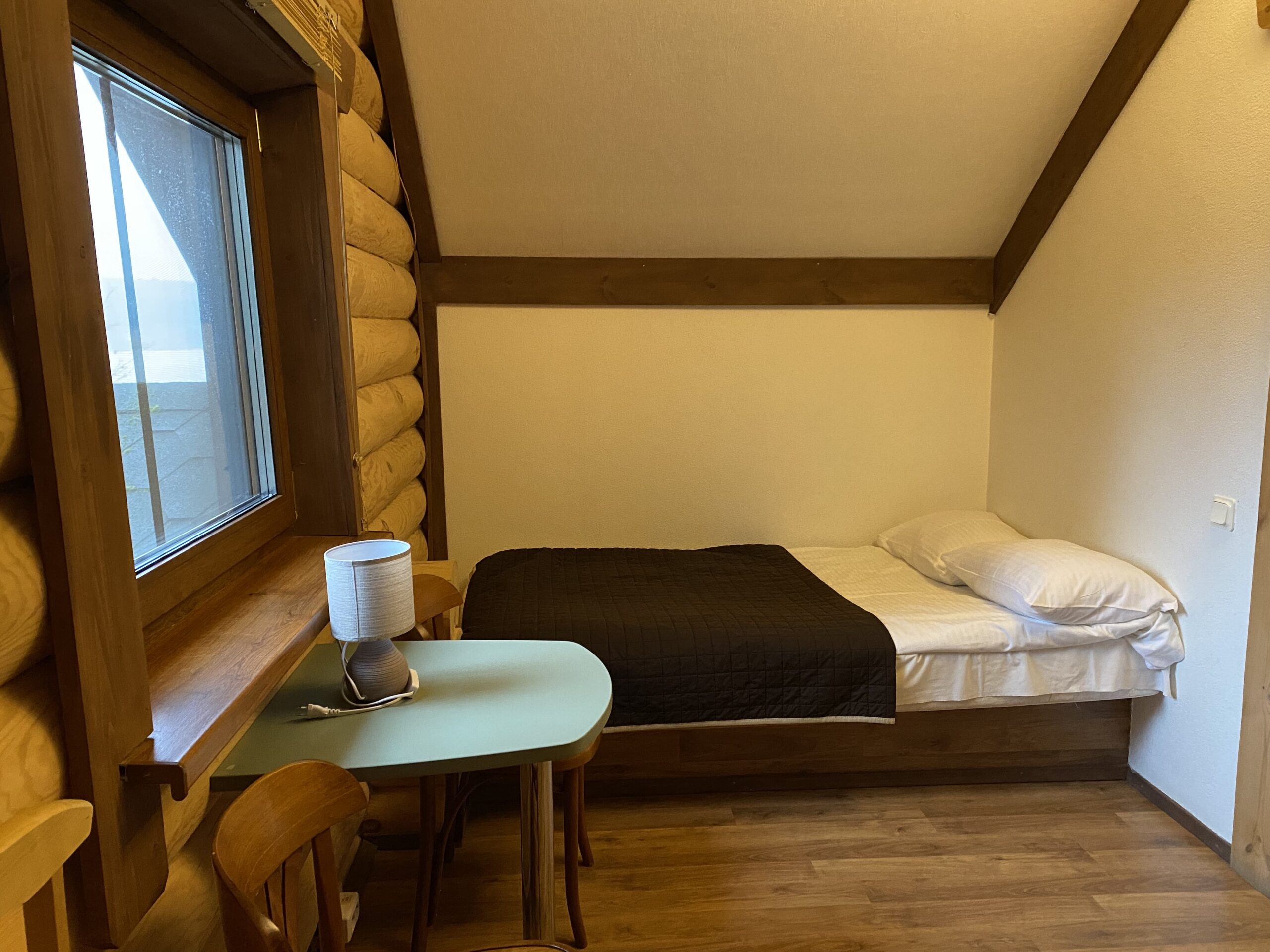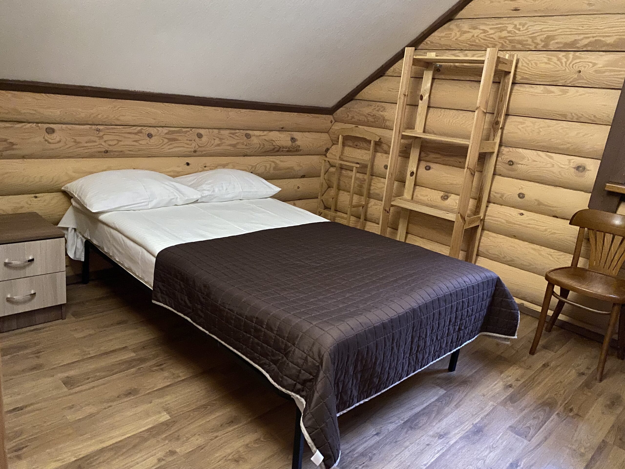 Небольшой уютный домик для двух человек. Коттедж состоит из комнаты, отдельной кухни, оборудованной всем необходимым инвентарем (охлаждающий минибар, микроволновая печь, плита, электрочайник, набор посуды). В комнате стандартный набор мебели, TV. Удобства в коттедже: WC, душевая кабина.